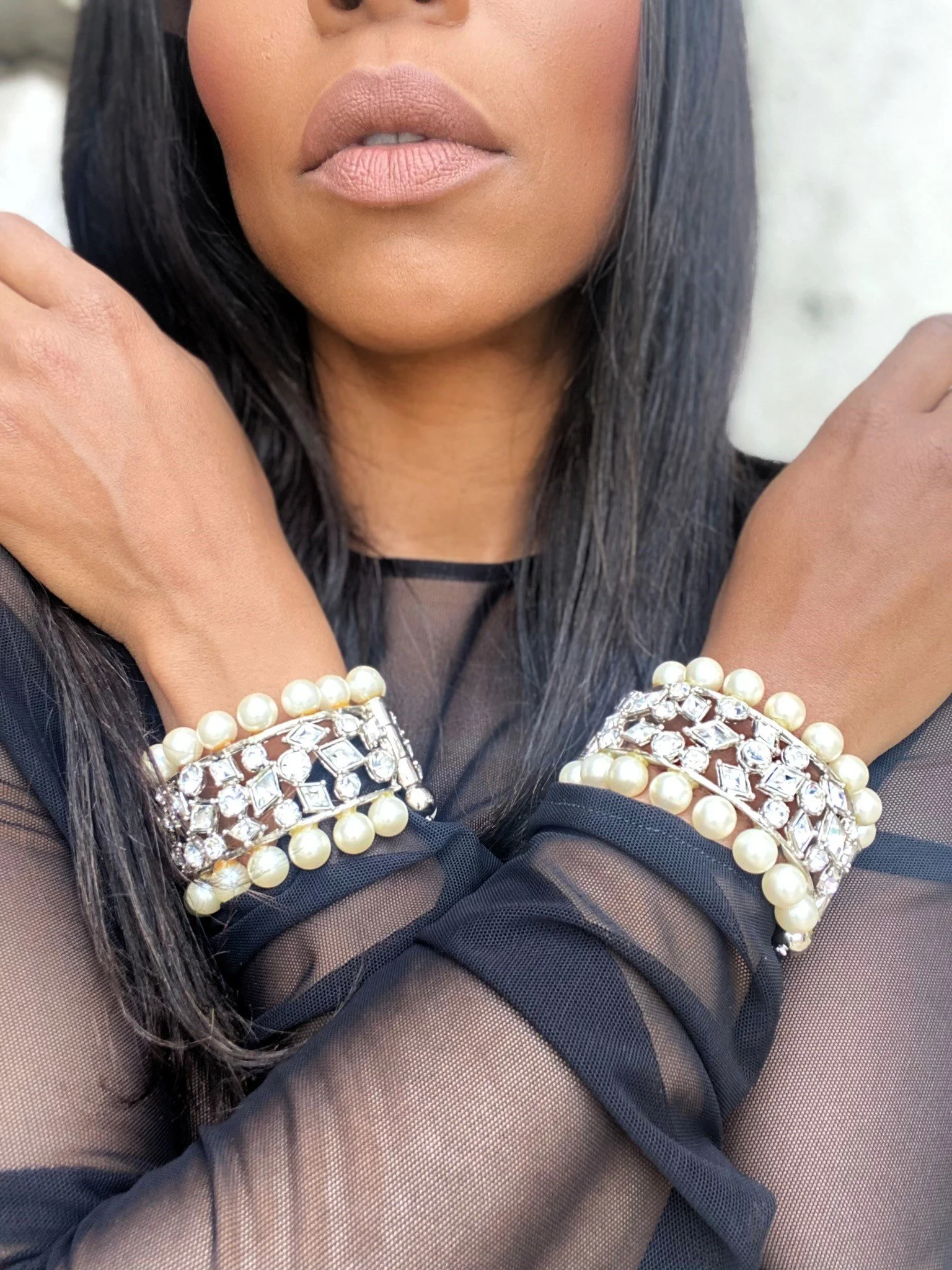 Oscar de la Renta mesh top / Dior magné cuffs from the vault (Still stunned by this pairing)